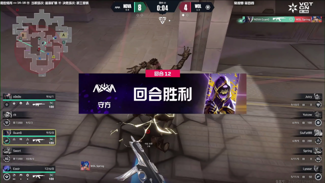 WOL拿下开局两分,但来到长枪局以后NOVA的包夹回防表现非常强势,GuanG今天的枪感火热,带领队伍打出一波四连胜,迫使WOL交出第一个暂停来调整。暂停回来WOL拿到一分,但继续被NOVA压制,第10回合WOL艰难地再拿一分以后NOVA没有继续给出机会,强势的包夹把WOL的进攻角度压缩到最小,把上半场的最后两回合全部拿下,以8:4的优势进入下半场。