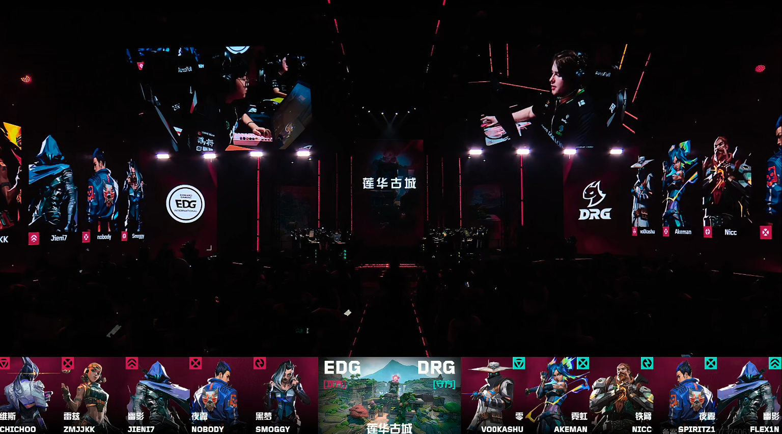 下半场手枪局Jieni7一波三杀,随后一回合康康在AB连顶住也拿到三杀,EDG连下两分。第15回合康康与Jieni7在C点被DRG提速逮捕,DRG一波快攻赢下奖励分。第16回合Akeman在A大快速拉出一波四杀带队赢下。DRG打出三连胜,第18回合球球在C点拿到首杀后,康康在A大四杀接住DRG的进攻。DRG连追三分,第22回合DRG进攻C点,没有给到道具清点,被EDG点内直架追平比分。第23回合DRG抢占B点,SpiritZ1残局打掉球球赢下。第24回合SpiritZ1夜露开大直接带队进C,EDG回防一波混战将DRG逼退在点外,Jieni7烟内一按到底将比赛拖到加时。加时赛首轮,DRG攻守连下两分,Nicc在关键时刻一打二的残局绝杀了比赛。DRG 14-12赢下莲华古城。