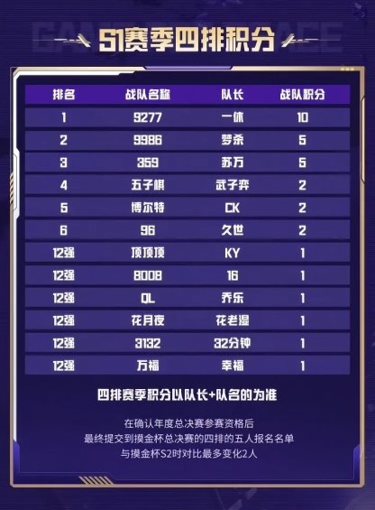 摸金杯S1前三甲揭晓,赛季积分榜单出炉