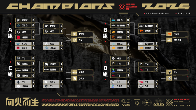 9月22日,随着MIBR以2-0战胜RRQ搭上前往淘汰赛的末班车,无畏契约2025巴黎冠军赛小组赛阶段比全部结束。历经十个比赛日的精彩对决,PRX、NRG、TH、FNC、DRX、GX、G2、MIBR等八支队伍突出重围晋级八强,将在淘汰赛展开更为激烈的角逐,向总决赛发起冲击。