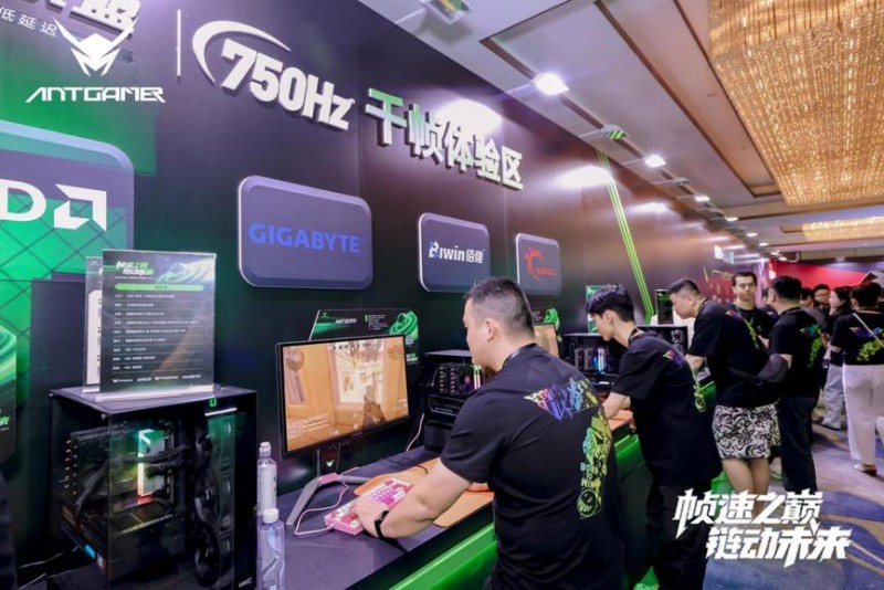 为增强活动现场的互动体验,发布会布置了多个沉浸式体验专区:750Hz千帧体验区、750Hz千帧互动区、HMO氧化物区、《永劫无间》联名区以及TTC合作体验区。在千帧体验区,来宾可以亲身感受750Hz刷新率下游戏画面的畅快流畅;在HMO氧化物区,则能近距离体验HMO技术带来的视觉优势;《永劫无间》联名专区展示了网游元素加持的显示器和外设;在TTC合作体验区,嘉宾可试用蚂蚁电竞全新推出的磁轴键盘等外设。多维度的互动体验让现场嘉宾能够深度试玩蚂蚁电竞的最新产品,在《无畏契约》、《CS2》、《永劫无间》等需要高帧率游戏中真切体会到千帧技术带来的极致动感和操作手感。