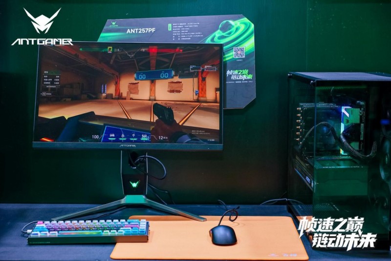 全球首款750Hz电竞显示器ANT257PF无疑是全场焦点。站在体验区,我亲眼见证了高速摄像机下的UFO Test对比:750Hz刷新率的画面几乎没有拖影,动态清晰度远超市面主流高刷产品。这款24.1英寸Fast-TN面板显示器,不仅把响应时间压到0.8毫秒,还搭载了蚂蚁电竞自研的“破闪技术”——试玩《无畏契约》时,面对闪光弹攻击,屏幕能自动压制强光,让我在混乱战局中更快锁定目标。