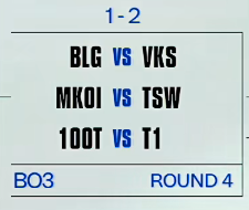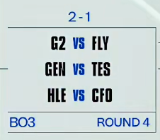 S15瑞士轮第四轮对阵:TES对阵GEN,BLG对阵VKS