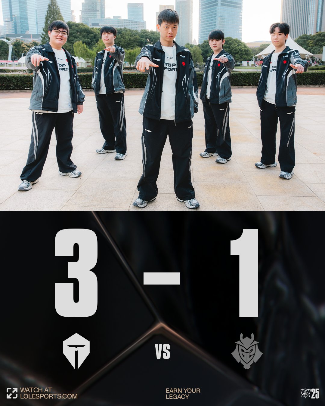 2025英雄联盟全球总决赛四分之一决赛,TES 3-1击败G2挺进四强!