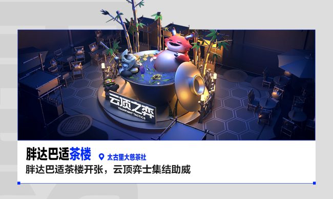胖达巴适茶楼也来成都啦!云顶之弈携手太古里大慈茶社开展限时主题活动,11月4日-11月9日将有花式活动举行,更有限定周边、熊猫茶趣、云顶福利等待各位弈士。